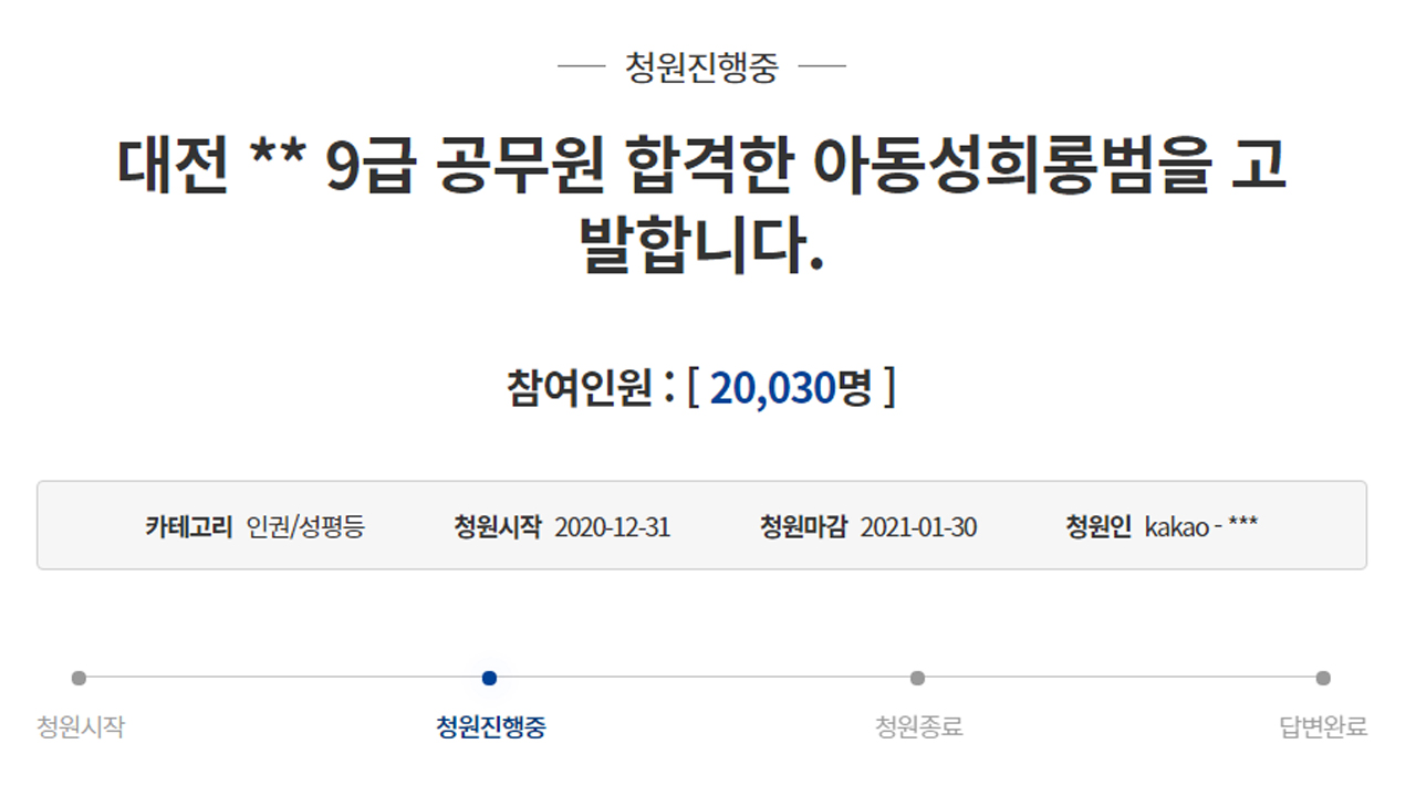 이후 청와대 국민청원 게시판에 ‘민*이’를 고발한다는 청원(https://www1.president.go.kr/petitions/595210)이 올라오기도 했다.