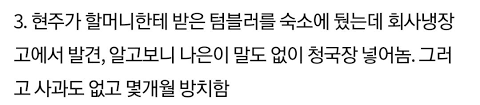 DSP의 해명과는 다르게 적은 수의 텀블러 중 굳이 현주의 텀블러에 청국장을 담아놨음을 알 수 있다.