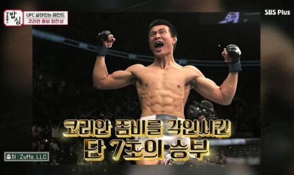 한편 정찬성은 과거 JTBC ‘아는 형님’에 출연해 강호동을 향해 “방어만 해도 내가 어딜 때리면 아픈지 알아서 20초 정도면 못 걸을 거다”고 자신 있게 말해 많은 이들에게 화제가 되면서 논란도 됐다.
