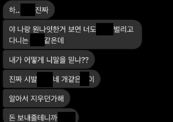 A씨 임신 소식에 남자는 “내 아이 맞냐”며 “나랑 원나잇하는 걸 보면 너도 다른남자랑 만나는 것 같은데 어떻게 네 말을 믿냐”며 의심했다. 남자는 “알아서 지우던가 해라. 돈 보내줄테니까 X져”라고 폭언을 하기도 했다.