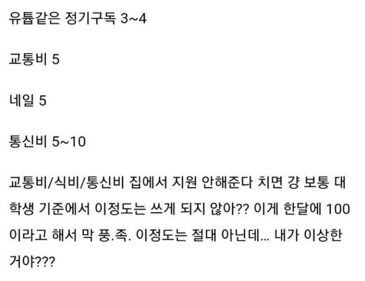 대학생이 한달에 100만원씩 쓰는 거 걍 보통 아니야?