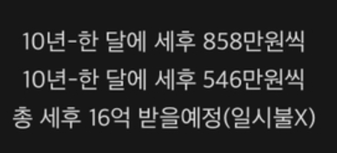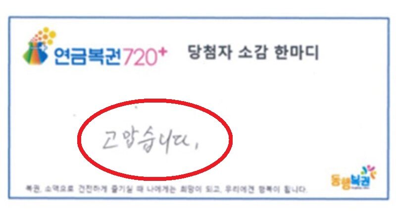 연금복권 1등으로 매 월 세후 858만원, 2등 4건 당첨으로 매 월 세후 546만원씩 받게 된다.