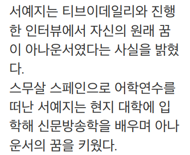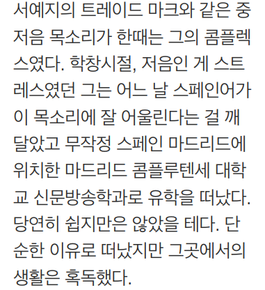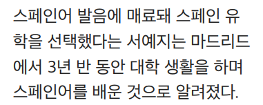 해당 게시물에 따르면 과거 스페인에 유학을 가 대학에 입학을 했었다고 말했지만 이후 다른 인터뷰에서는 대학을 나오지 않았다고 말을 바꿨다.