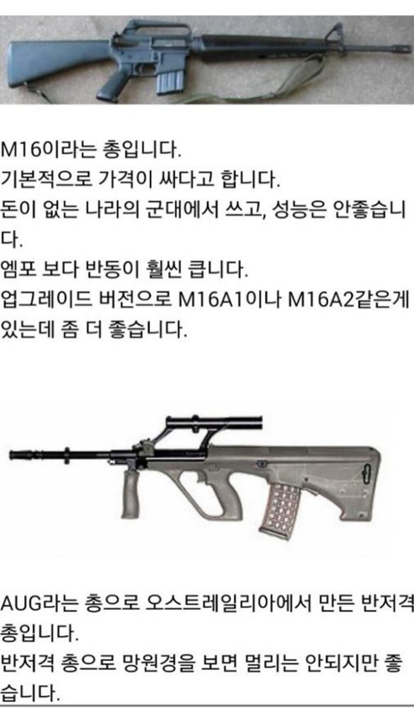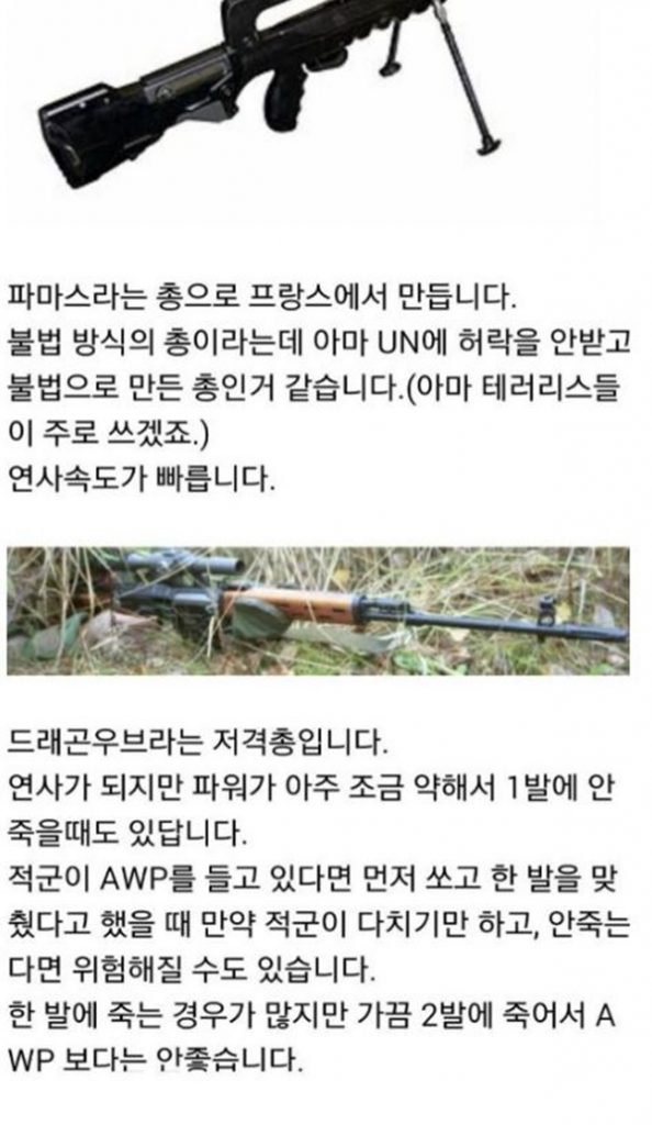해당 게시물은 넥슨 FPS 게임 ‘서든어택’에 등장하는 총기류를 설명하는 글이 었다.