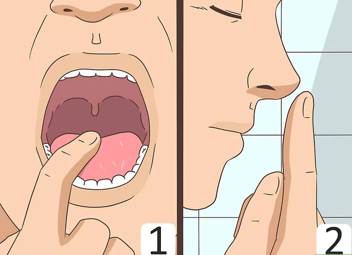 냄새의 정도가 심하면 보통 입안에 세균이 많이 증식한 것으로 보며, 입냄새를 확인하기 위해 손등에 침을 발라서 냄새를 맡아보는 것이 있다.