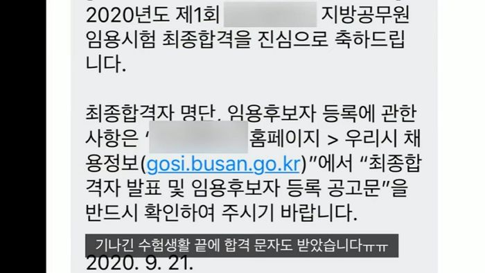 영상 속에는 2년 8개월을 성실하게 버틴 공시생의 합격 순간이 고스란히 담겨 있었다.