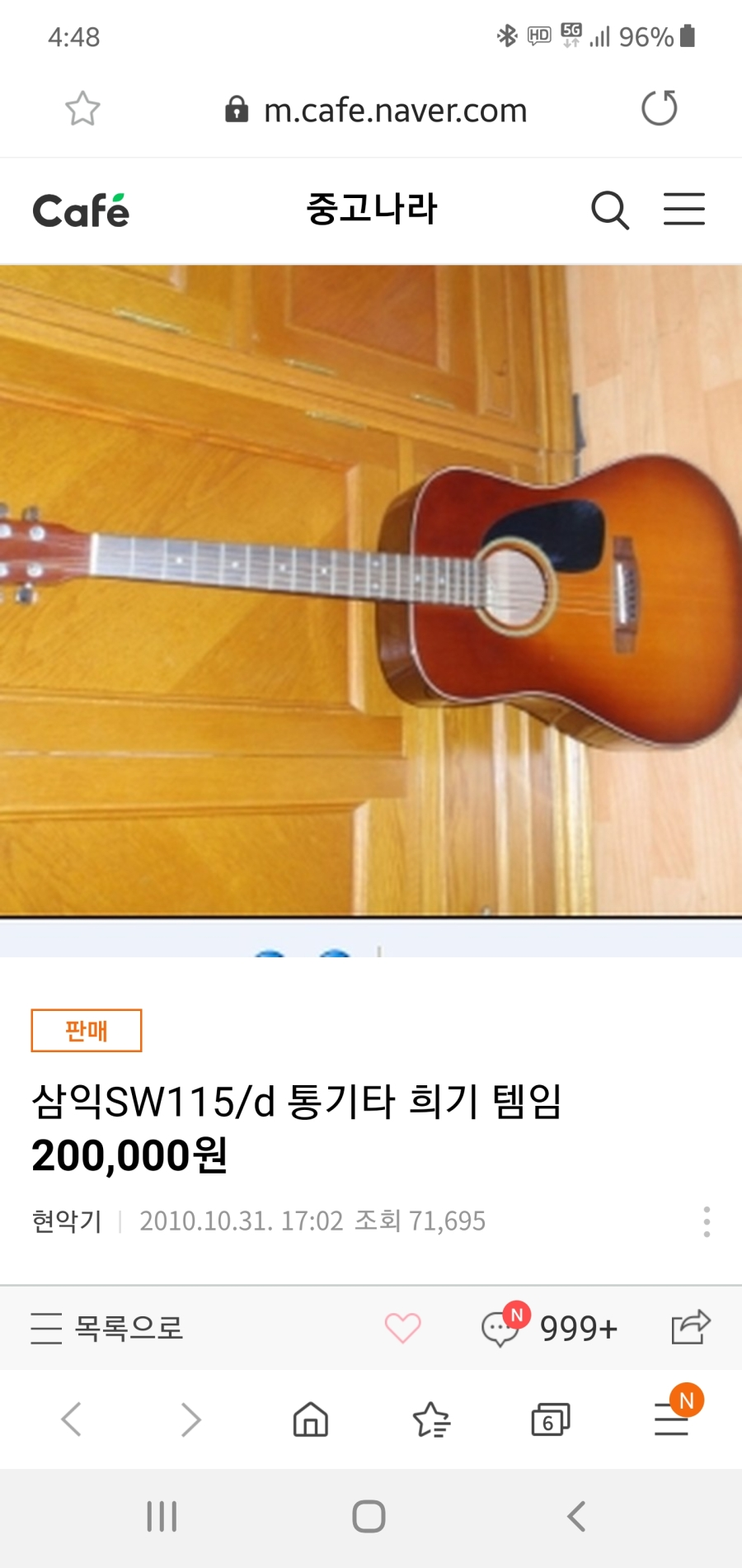앞서 2010년 온라인 중고거래 사이트에는’삼익 통기타 희귀 템 20만원’이라는 판매 글이 올라왔다.