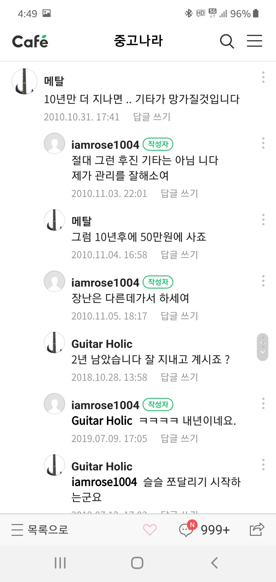 당시 한 누리꾼은 “10년만 더 지나면 기타가 망가질 것입니다”라고 저주했다.