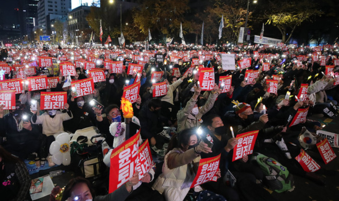 지난 19일 서울 도심 한복판에서 이태원 참사 희생자들을 추모하고 정권을 규탄하는 대규모 촛불 집회가 열려 화제가 되고 있따.