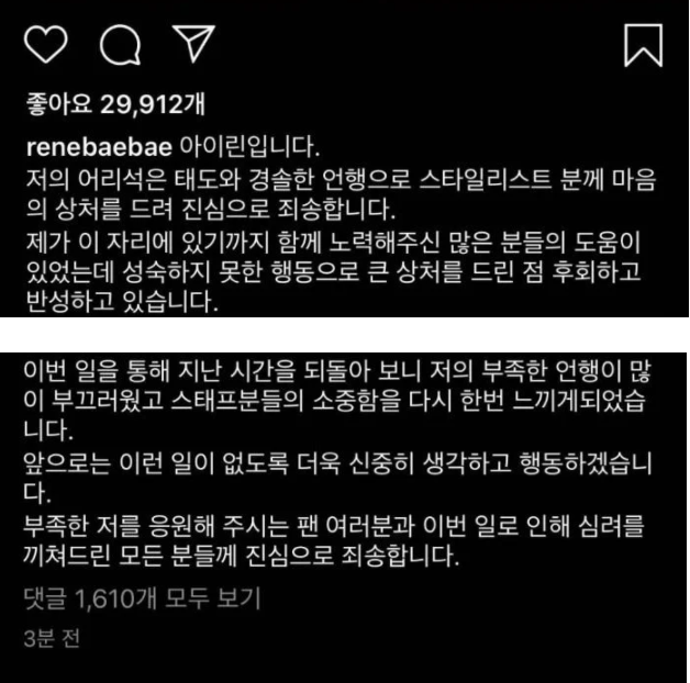10월 레드벨벳 아이린 갑질 및 인성 논란
