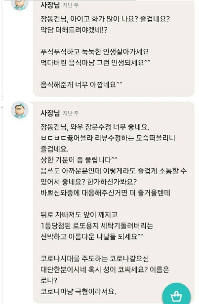 이외에도 사장은 “백수시냐”, “알바 시켜드리냐”, “코로나마냥 극혐이다” 등의 댓글을 달았다.