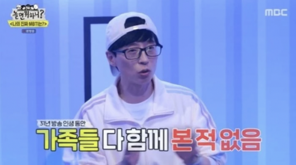 이선빈, 이말년, 조나단, 이이경, 라붐 진예와 함께 MBTI 중 E(외향형)과 I(내향형)로 팀을 나눈 뒤 전문가를 통해 자신들의 MBTI에 대해 이야기하는 시간을 가진 유재석은 MBTI 유형 중 ‘ISFP’를 판정 받았다.