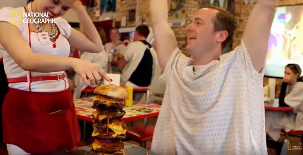 남성의 자세한 설명과 흥미로운 실험을 본 직원은 그를 위해 거대한 버거를 제공했다고 한다.