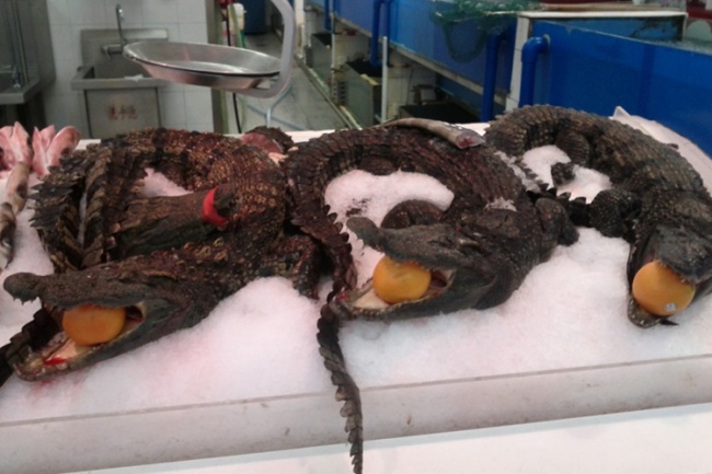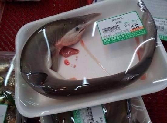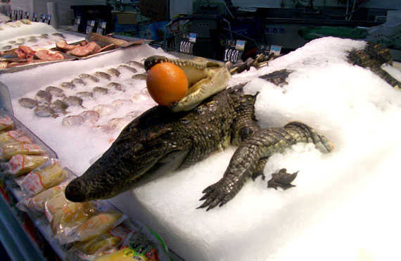 보통 마트에 가면 고기를 여러 부위로 나눠 판매한다. 그러나 중국 윌마트에서는 통째로 파는 모습을 볼 수 있는데, 그 고기 중 상어와 악어도 있다. 단 미국 월마트에서는 볼 수 없다고 한다.