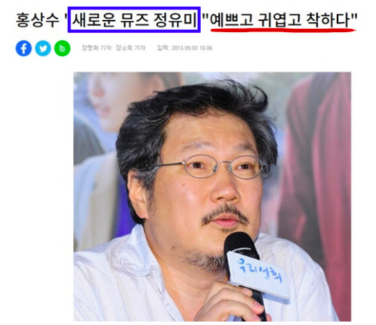 홍상수가 영화 ‘우리 선희’ 제작 발표회에서 정유미를 “뮤즈”라 칭하며, “예쁘고, 귀엽고, 착하다”라 전했다.