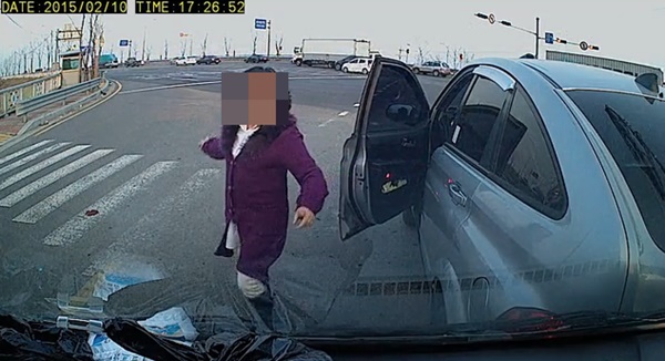 넘어진 여성 운전자를 무차별적으로 발길질했고 특히 얼굴에 집중적인 폭행을 가했다.