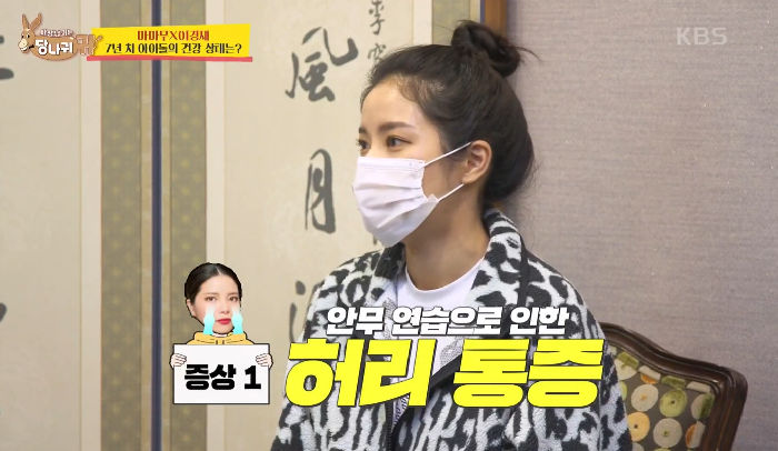 솔라는 “허리가 가장 불편하다”라며 “어깨도 아프고, 장도 불편하고, 변비도 있다”라고 말했다.