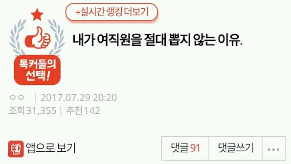 한 커뮤니티에 여직원을 절대 뽑지 않는 이유라는 글이 올라왔다.