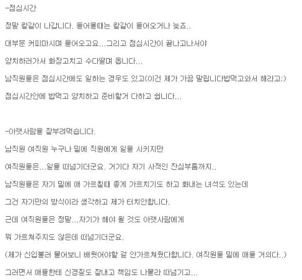 글쓴이는 여직원들 특징이 정말 떠도는 말과 일치하다고 말하며 여직원의 특징을 설명했다.