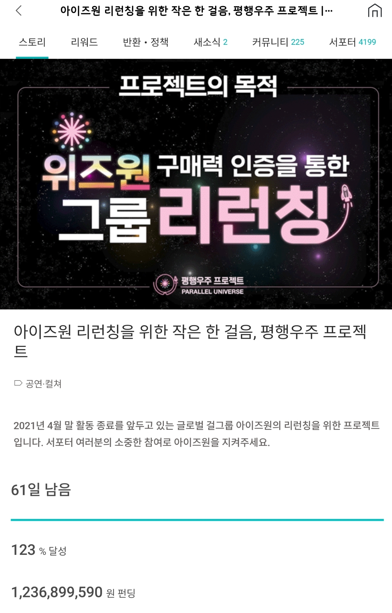 ‘평행우주 프로젝트’로 불리는 이번 펀딩은 4월 활동 종료를 예고한 아이즈원의 리런칭을 위해, 팬 연합이 진행하는 프로젝트다.