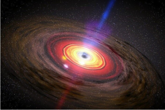 은하 중심에 위치한 블랙홀을공전하는 불질 원반은 우주에서 가장 밝은 물체다.