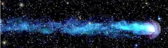 죽어가는 별이 어둠컴컴한 우주속을 초음속의 속도로 질주하고 있다.