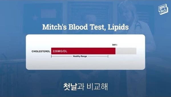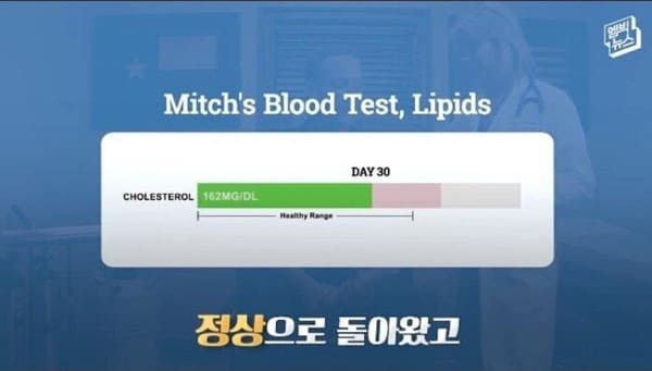 그렇게 한 달 동안 챌린지를 실시한 결과 첫날과 비교했을 때 모든 몸의 수치가 정상으로 돌아왔고, 몸무게는 13kg이나 빠진 것을 확인했다.