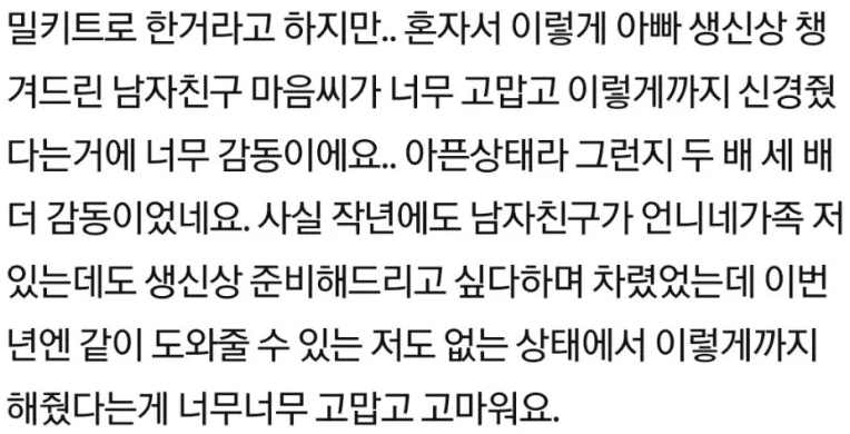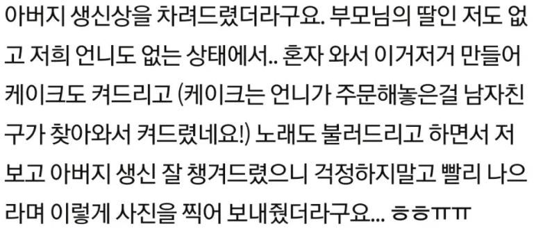 아버지 생일상 차려준 남자친구