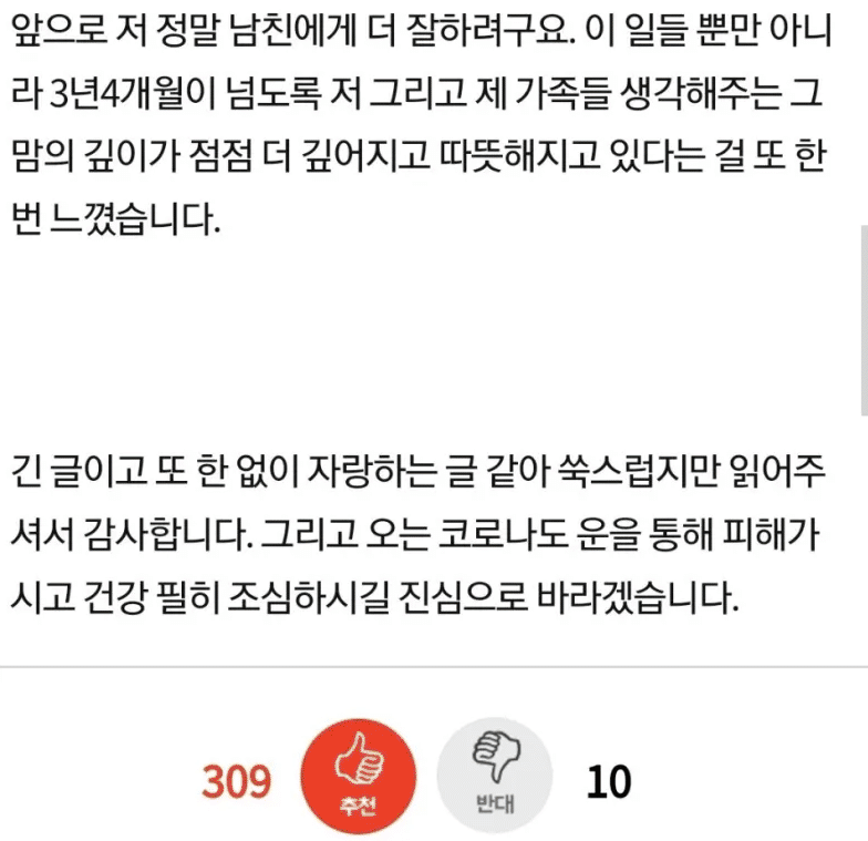 해당 게시글을 접한 누리꾼들은 “진짜 이건 바로 결혼이다”, “코로나 끝나면 상견례 진행해”, “저런 남자가 진짜 존재하는구나…정말 다정하네”등의 반응을 보였다.