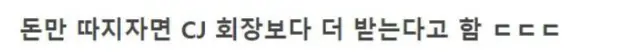 A씨는 “돈만 따지자면 CJ 회장보다 더 받는다고 함 ㄷㄷㄷ” 라 말문을 열었다.