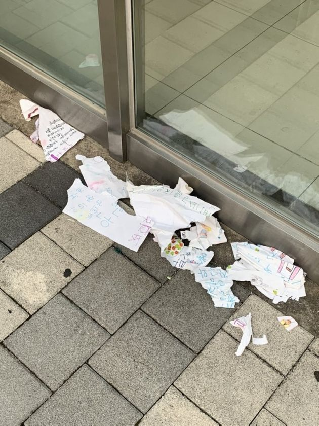 유치원 측에서 월요일에 수거를 해간다는 안내에도 불구하고, 한 입주민이 포스터를 찢어버린 것이다.