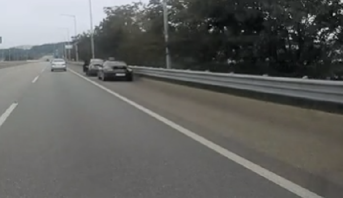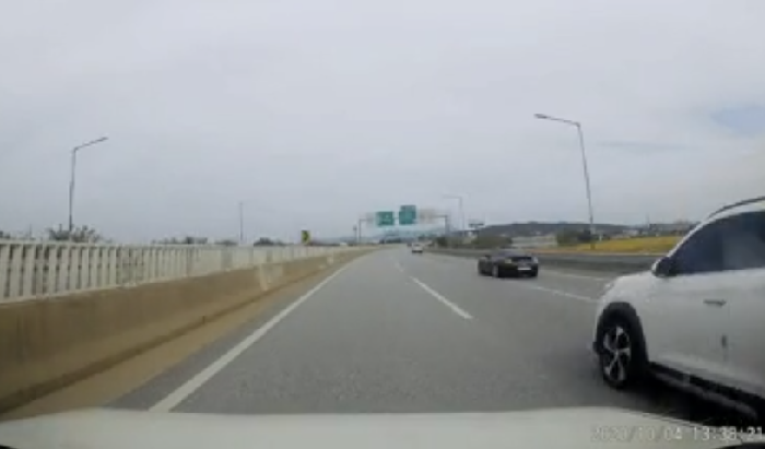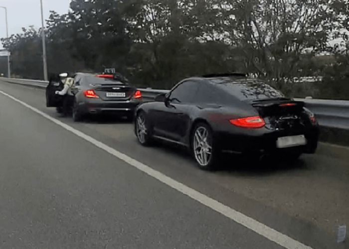 그 순간 오른쪽에서 검은색 제네시스 한 대가 나타나 포르쉐의 뒤를 쫓아갔다.