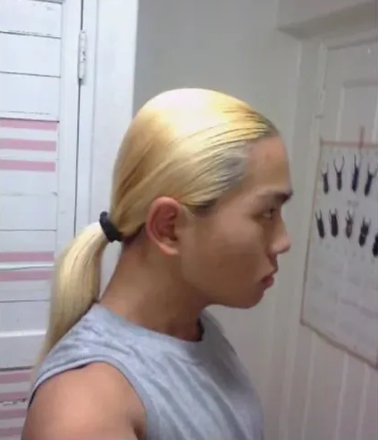 금발 포니테일에 도전한 남성이 화제다.