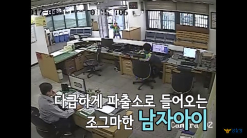 이 때 갑자기 다급하게 어느 남자아이가 파출소로 들어온다.