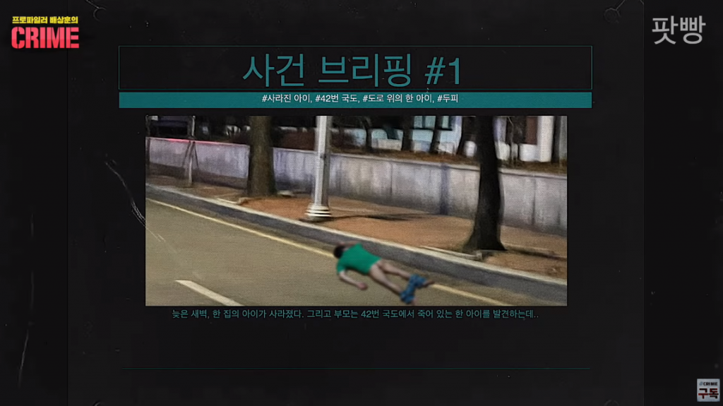 해당 사고는 바로 늦은 새벽 도로 위에서 한 아이가 기이한 모습으로 숨진 채 발견된 사건이다.