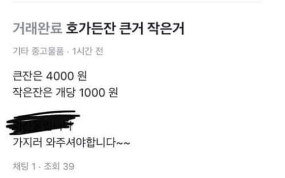 판매자는 ‘호가든잔 큰 것과 작은 것’을 거래하는 글을 올렸다.