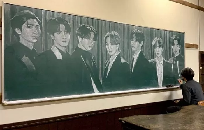 지난 10일(현지 시간) 한 매체에서 방탄소년단을 좋아하는 학생들을 위해 미술 선생님이 칠판에 그려낸 사연을 전했다.