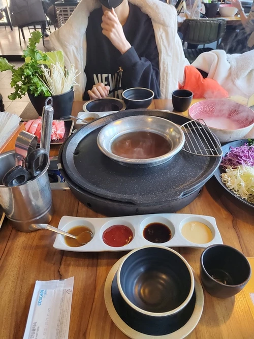 이후 10분간의 실밥 푸는 시간이 지난 후 미용실에 들른 뒤 외식을 즐겼다면서 여자친구인 BJ 애교용과 샤브샤브를 먹으며 데이트 중인 사진도 공개했다.
