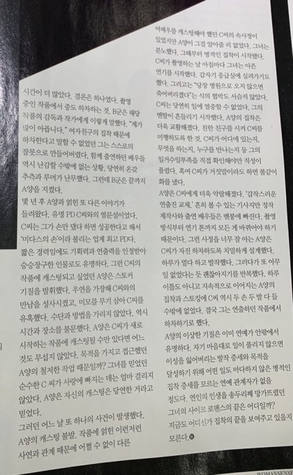 해당 게시물에 따르면 서예지는 배우 김수현과 사귀었으며, 김수현의 사촌 형 이로베 감독과도 사귀었다고 전해졌다.