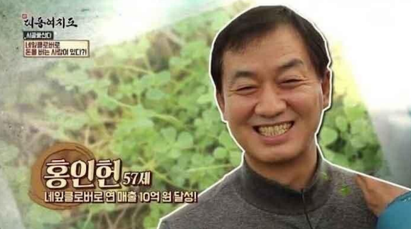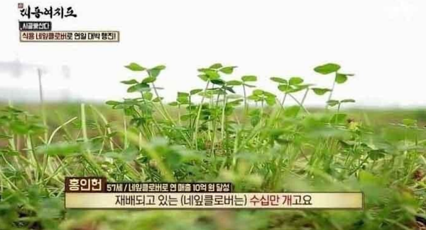 그는 식용 네잎클로버를 대량 생산해내 한 팩에 10만원으로 팔아 연매출 30억 이상의 수익을 내고 있다고 한다.