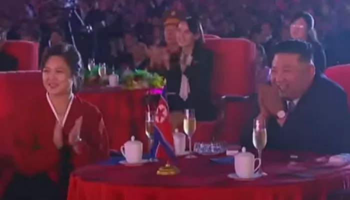 김 위원장 부부는 공연에 매우 열중하는 모습이며, 김 위원장은 크게 미소를 짓기도 했다.