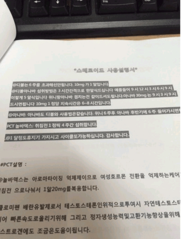 스테로이드란 ‘근육 강화제’이다. 이를 무분별하게 사용할 경우 여러가지 심각한 부작용이 따르기에 반드시 의사의 진료를 통해 처방을 받아야 하며 질병치료가 아닌 근육 강화나 운동 효과를 늘리기 위한 목적으로 사용되는 것은 불법이다.