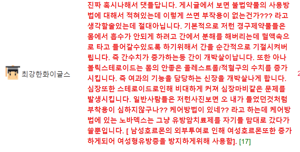 특히 최근 한 온라인 커뮤니티에서는 “스테로이드를 8개월간 투약한 남성의 충격적인 몸 변화”라는 제목으로 한 남성의 사연이 올라와 수많은 누리꾼들 사이에서 화제가 되고 있다.