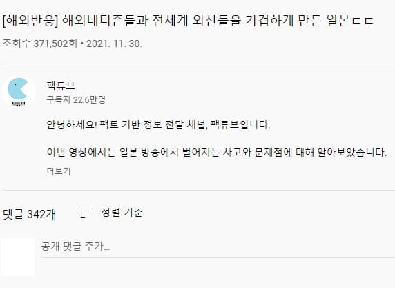 과거 유튜브 채널 ‘팩튜브’에는 ‘해외네티즌들과 전세계 외신들을 기겁하게 만든 일본ㄷㄷ’이라는 제목의 영상이 올라와 네티즌들의 이목을 끌었다.