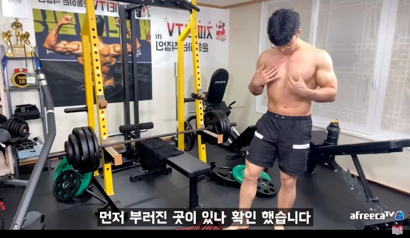 직장인 헬스 유튜버인 지피티는 최근 실시간 방송으로 시청자와 소통하며 벤치프레스를 진행했다.