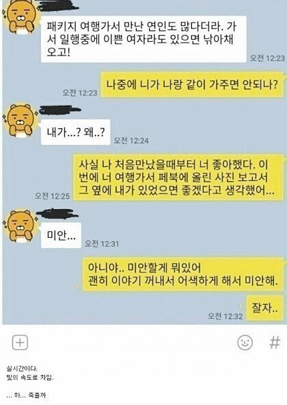 아무런 깜빡이 없이 카카오톡으로 고백한 남성은 그렇게 차이고 말았다.
