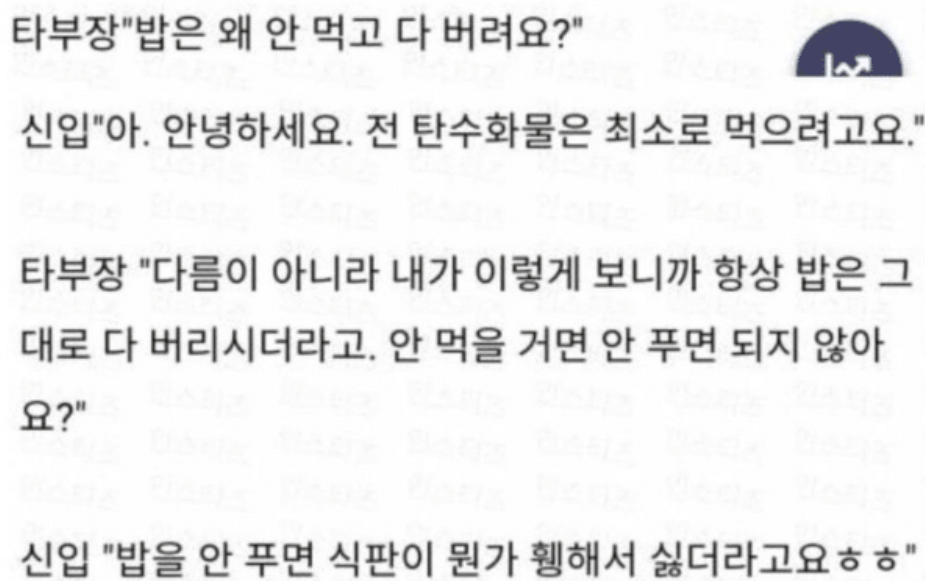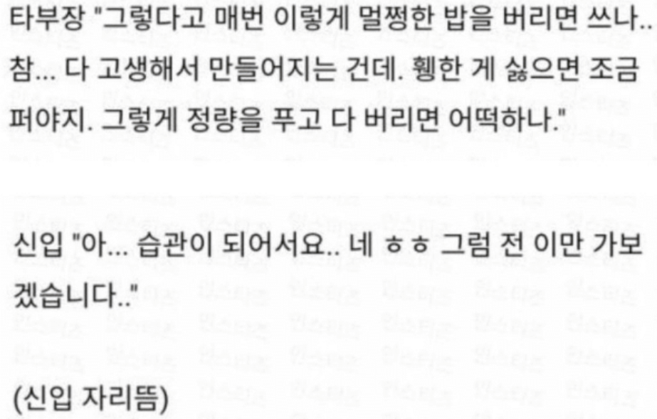 이는 “밥을 계속 버리는 신입사원”이라는 제목의 글로 올라와 엄청난 주목을 받았다.