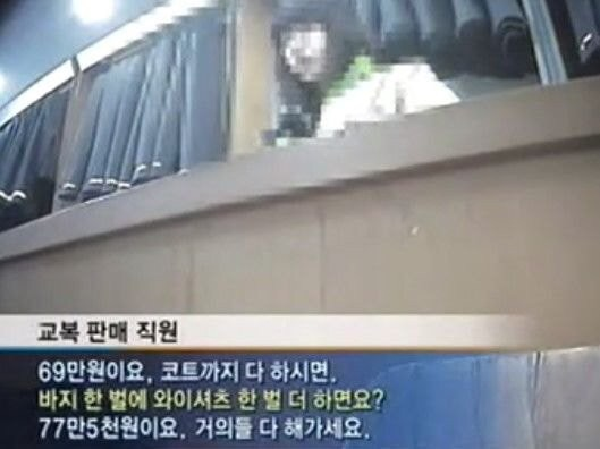 교복 판매 직원은 “교복에 코트까지 구매하면 69만 원, 바지와 와이셔츠를 추가하면 77만 원이 넘는다. 거의들 다 해간다”고 인터뷰하기도 했다.