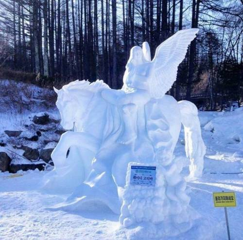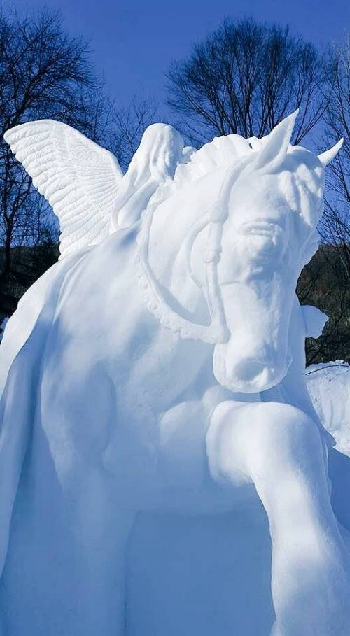 사진 속에는 눈으로 만든 놀라운 조각들이 펼쳐져 있는 것을 확인할 수 있다.