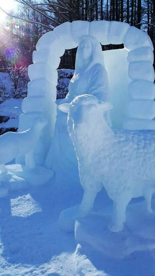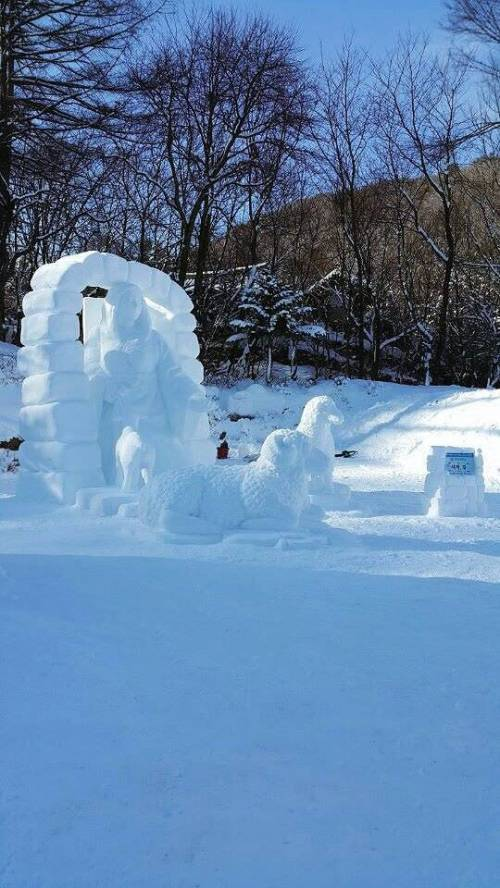 양과 성모 마리아로 추측되는 여성의 눈사람도 놀랍다.